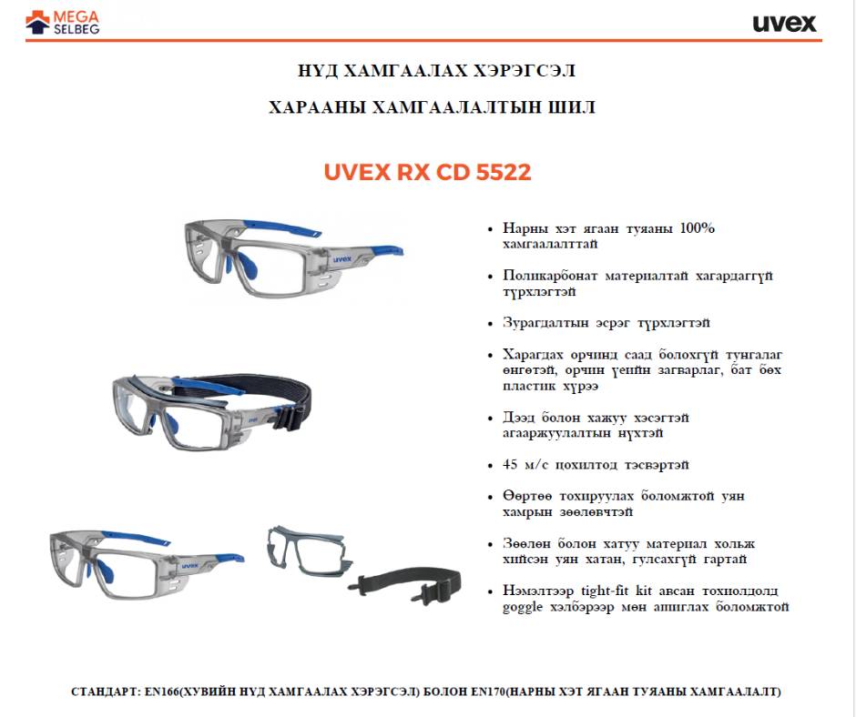 Uvex Safety / Germany - Safety PPEUVEX харааны хамгаалалттай шил / prescription safety glass Хол, ойр, хол ойр хосолсон, хамелион линзтэй Олон төрлийн рамны сонголттой /https://www.uvex-safety.com/en/individual-ppe/prescription-safety-spectacles// Захиалгаар нийлүүлнэ